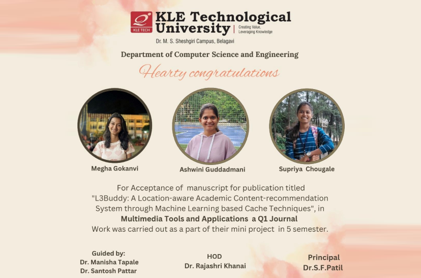 5th Sem students won a challenge of a 24-hour Hackathon at KLE-IT, Hubli